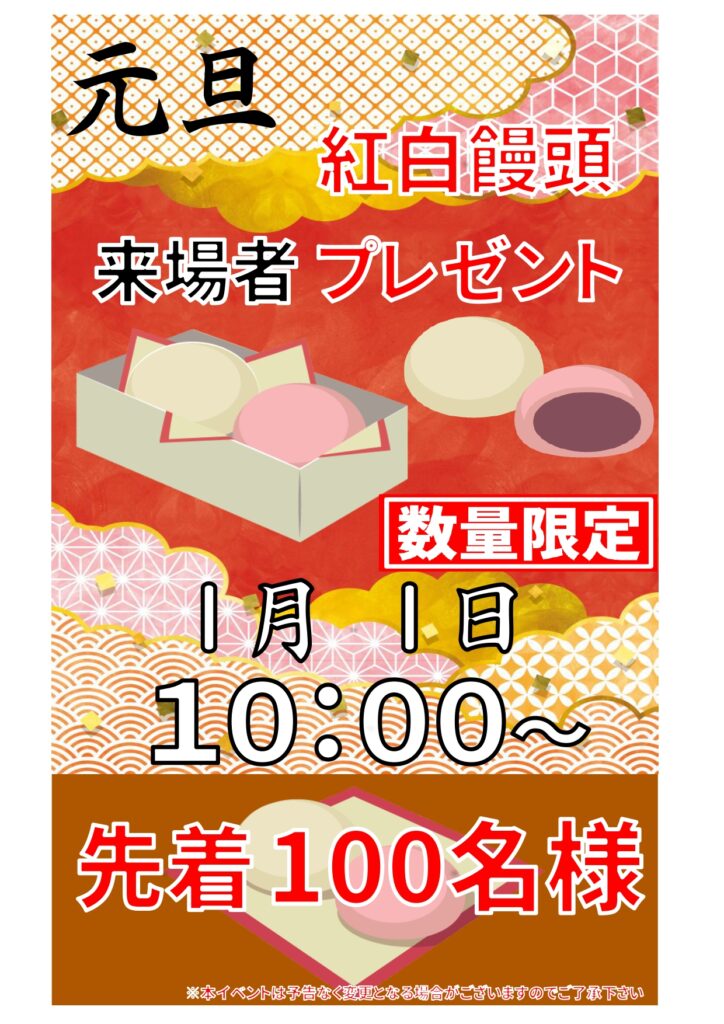 先着100名様に「紅白饅頭」をプレゼントいたします。💓